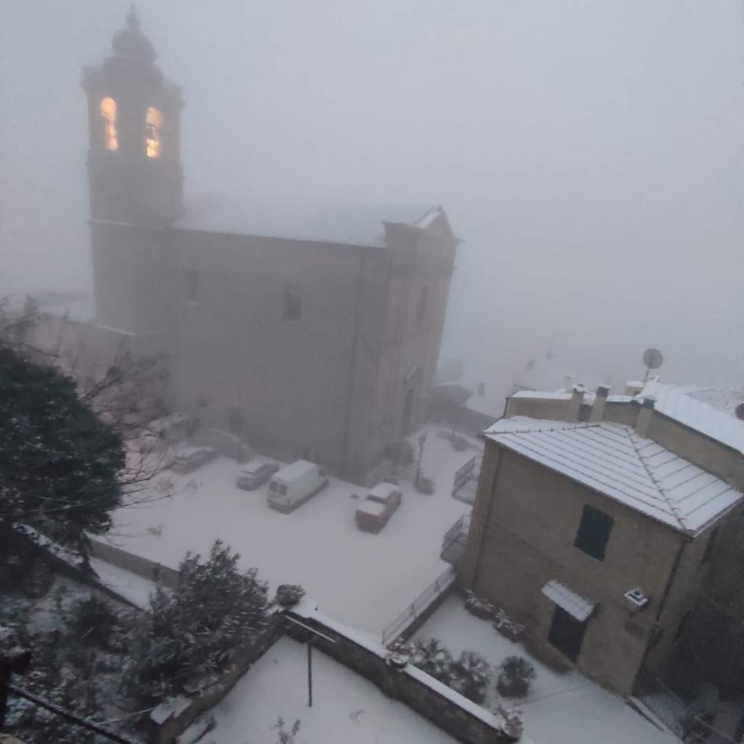 Val Vibrata. Nevica nelle zone collinare della Val Vibrata in queste ore. Il maltempo, annunciato, è arrivato e la perturbazione in corso sta portando gelo e nevicate sulla fasce collinari e nell’interno.