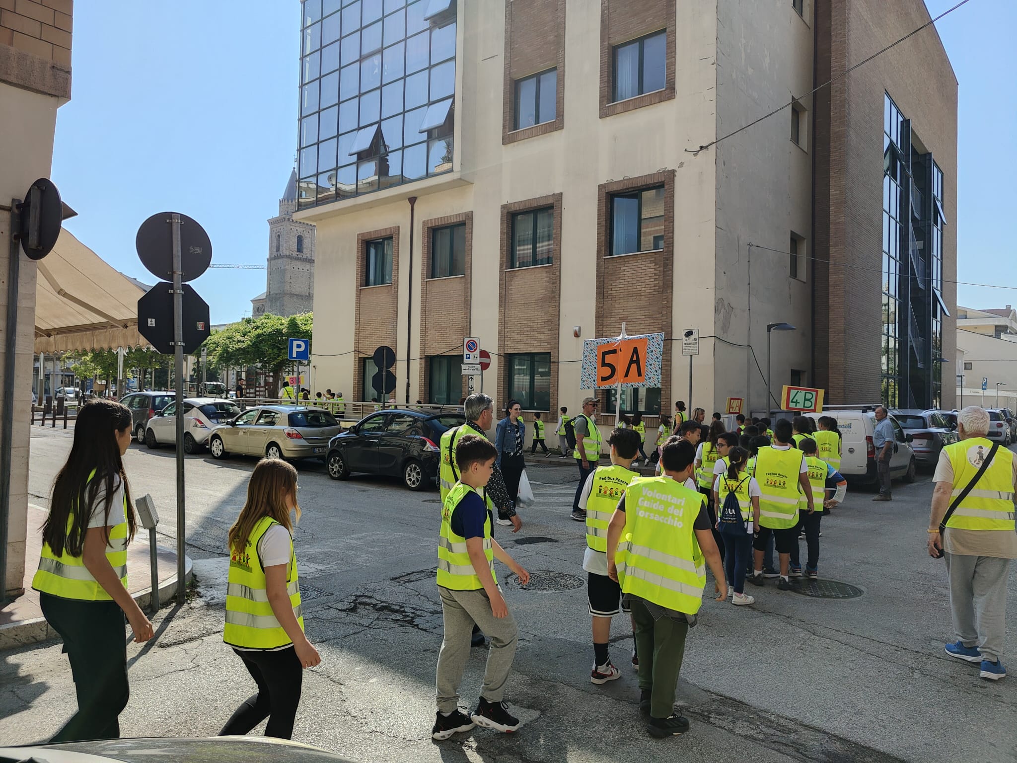 “Oggi l’istituto comprensivo Roseto 1 ha deciso di organizzare un evento portando le loro alunne ed alunni in una tratta simbolica dalla Scuola Elementare G. D’Annunzio alla Villa Comunale. I docenti si sono resi disponibili in maniera encomiabile ad accompagnare così tante bambine e bambini lungo le strade di Roseto”.