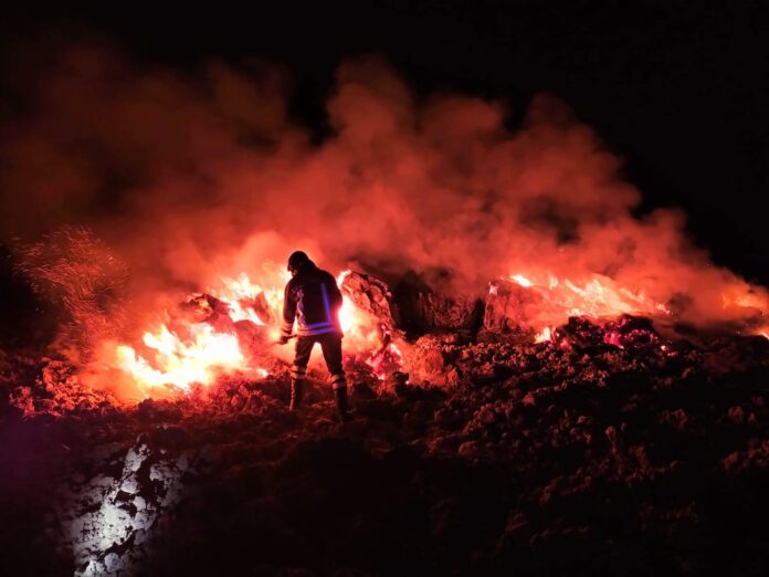 Successivamente la stessa squadra è stata inviata a Cologna, nei pressi della strada comunale Coste Lanciano, dove si è sviluppato un incendio che ha coinvolto circa trenta rotoballe di fieno ed è stato affrontato dai vigili del fuoco con i getti degli idranti in dotazione all’autopompa. L’intervento si è concluso stamattina all’alba con lo smassamento e minuto spegnimento del materiale parzialmente bruciato.