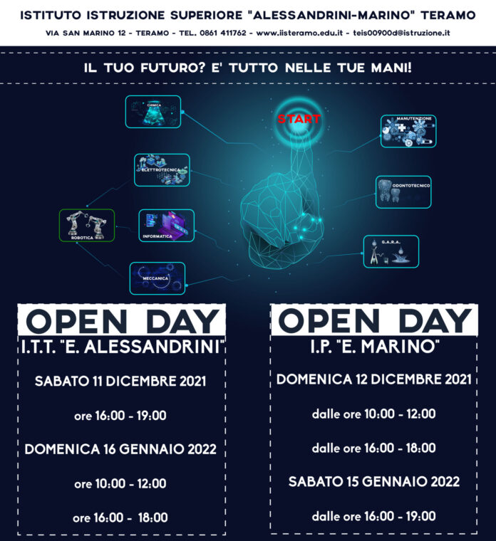 Teramo. Questo fine settimana si svolgeranno gli Open Day presso l’Istituto di Istruzione Superiore “Alessandrini-Marino” di Teramo.