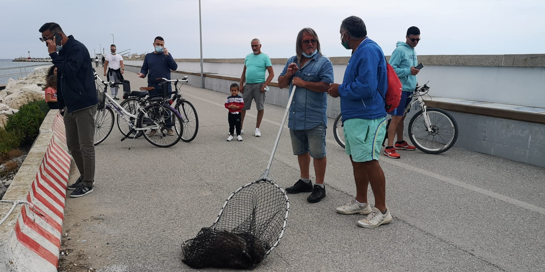 Un capannello di persone ha assistito alla scena del recupero del povero animale, neppure tanto spaventato. Nel frattempo sono stati avvertiti gli uomini della Capitaneria di Porto di Giulianova che sono giunti sul posto con il comandante Claudio Bernetti e il suo vice Domenico Petruni, oltre ad un mezzo su cui è stato poi caricato il roditore.