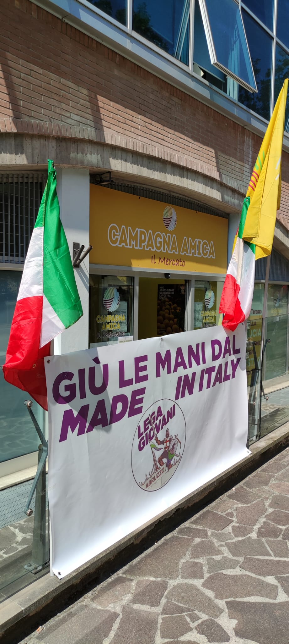Ieri mattina la Lega Giovani Teramo al mercato “Campagna Amica” Coldiretti Teramo ha manifestato in difesa del Made in Italy esponendo uno striscione di fronte alla struttura con un .