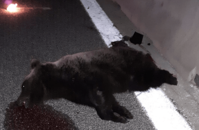Il veicolo che ha impattato con l’animale che si presume essere di grosse dimensioni ha proseguito senza fermarsi. L’orso, un maschio subadulto di 3-4 anni, non era marcato né radiocollarato.