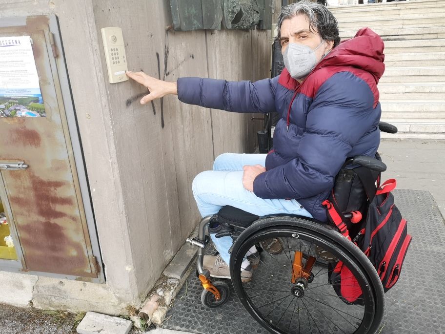 “Lo stazionamento per il servoscala è previsto in salita e quando la carrozzina si deve posizionare per salire, la pendenza crea un attrito e la persona disabile tende a ribaltarsi all’indietro. Il montascale presente non si usa più da decenni perché non garantisce né autonomia né stabilità e spesso è fuori servizio!”, spiega ancora Ferrante, “Quando, dopo tantissimo tempo e con fortuna, si è riusciti a superare le scale ci troviamo davanti all’ingresso che presenta una soglia di marmo di almeno 3 centimetri che fa bloccare la carrozzina, e solo grazie alla gentilezza dei custodi, le persone in carrozzina vengono sollevate con il rischio di cadere. Tutto questo davanti agli occhi indiscreti di tanti cittadini. Pensiamo cosa accade quando piove!”.