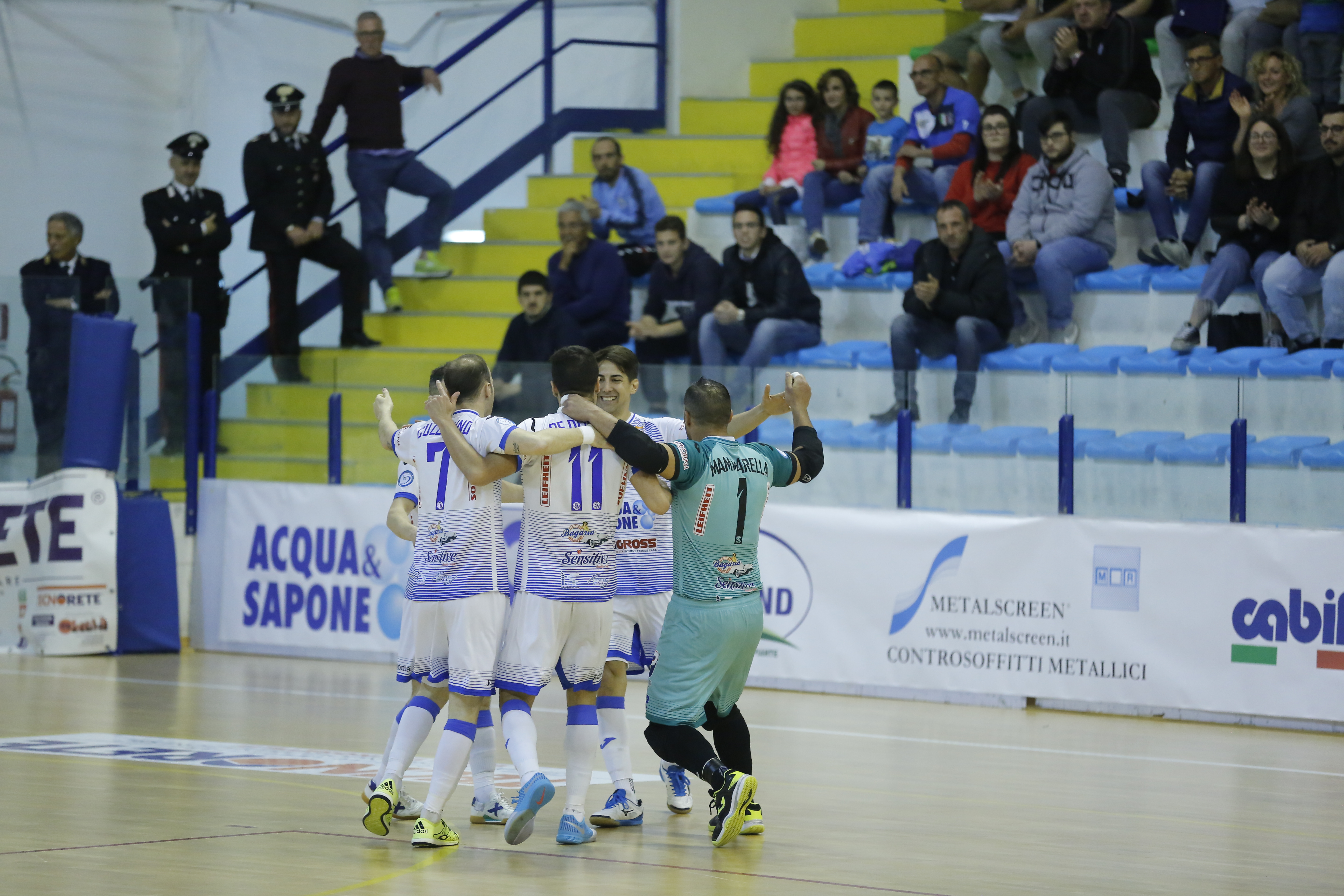 Nella ripresa, ancora Dal Cin al 2’ prodigioso sulla punizione dal limite di Cuzzolino. Everton non insiste con il portiere di movimento e prova a giocarsela. In tre minuti l’AcquaeSapone costruisce quattro palle gol clamorose, ma quello che conta è che una di queste è quella giusta: 0-2 firmato dal diagonale di Calderolli sporcato da Bissoni e Dal Cin. Sotto di due, ora il coach siciliano deve tornare al 5 contro 4, inserendo Selucio in maglia fluo. Palla spostata da sinistra a destra per aprire lo spazio per il tiro al mancino di Zanchetta. A metà ripresa la miglior palla dei padroni di casa: Selucio mette forte al centro, Bissoni pronto a insaccare, ma appare Lima come un falco a liberare l’area. Il cronometro verso il 40’ e il tema non cambia più. Si gioca nella metà campo nerazzurra, gli uomini del Maritime in modalità risparmio energetico per non sentire la fatica ci provano con la superiorità numerica, mentre Murilo e compagni attendono nei propri dieci metri in attesa della palla buona da rubare e mettere in cassaforte. Arriva a 2’30’’ dalla sirena: Jonas scappa a Caio Japa che lo spinge per non fargli segnare il terzo gol. Rosso diretto per l’esperto difensore del Maritime. E’ il momento di ammazzare la partita: torna in campo Lukaian per il colpo di grazia, che in superiorità numerica arriva puntuale. Lo firma Coco sfondando al centro. Nell’ultimo sussulto d’orgoglio del Maritime, Murilo sfoga la sua rabbia calciando un coast to coast nella porta vuota dei padroni di casa: 0-4.
