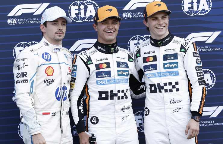 Charles Leclerc scatterà in prima fila dalla seconda posizione, con davanti a lui il solo Lando Norris su McLaren. Il quale ha fatto meglio del ferrarista per appena 109 millesimi. E magari Leclerc sta sperando in cuor suo di trovarsi al cospetto di una delle poche debolezze dell’inglese, ovvero le partenze. Più volte Norris ha mostrato di avere un tallone di Achille al semaforo verde. In seconda fila c’è invece Oscar Piastri, che ha pasticciato un bel po’.